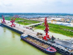 夏末秋初,长江中上游的瑞昌市公用码头和中林专用码头,大型门座式起重机正在装卸作业,现场忙而有序。停泊货轮上的木材自非洲启航,漂洋过海再沿长江溯流而上抵达瑞昌,船上满载金丝木、刚果木、奥坎木等家具木材。