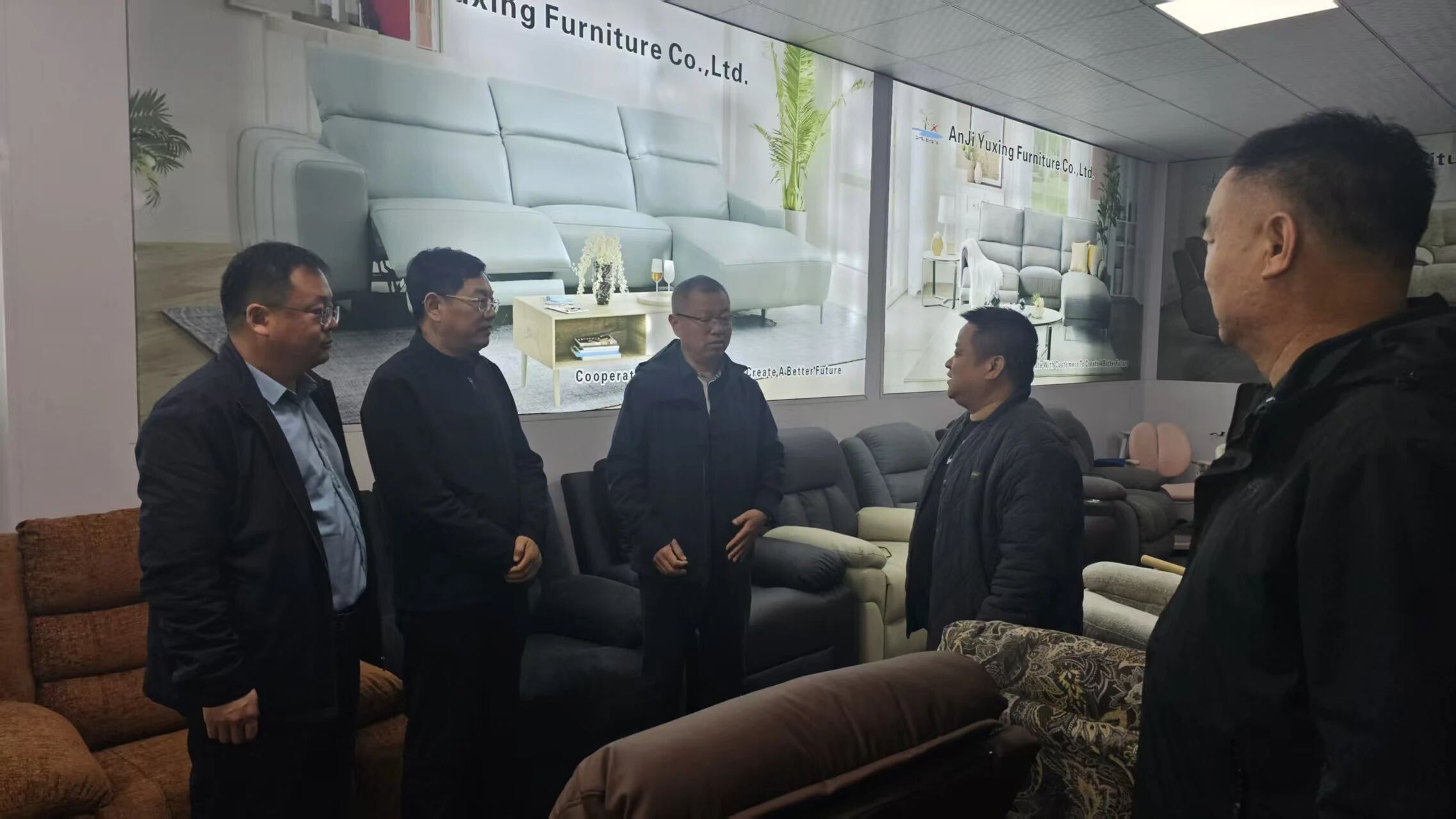 在安吉裕兴家具有限公司负责人邱玉新的全程陪同下先后到常州宏宝家具配件有限公司、浙江新昱鑫科技有限公司、浙江安吉木泽优家家居有限公司、浙江盛贝智能家具有限公司、安吉县盛信办公室家具有限公司、嘉瑞福(浙江)家具有限公司进行参观考察。考察团参观了不同类型公司生产车间、展厅以及及仓储物流库,详细了解了产品的工艺流程、生产情况以及市场行情。
