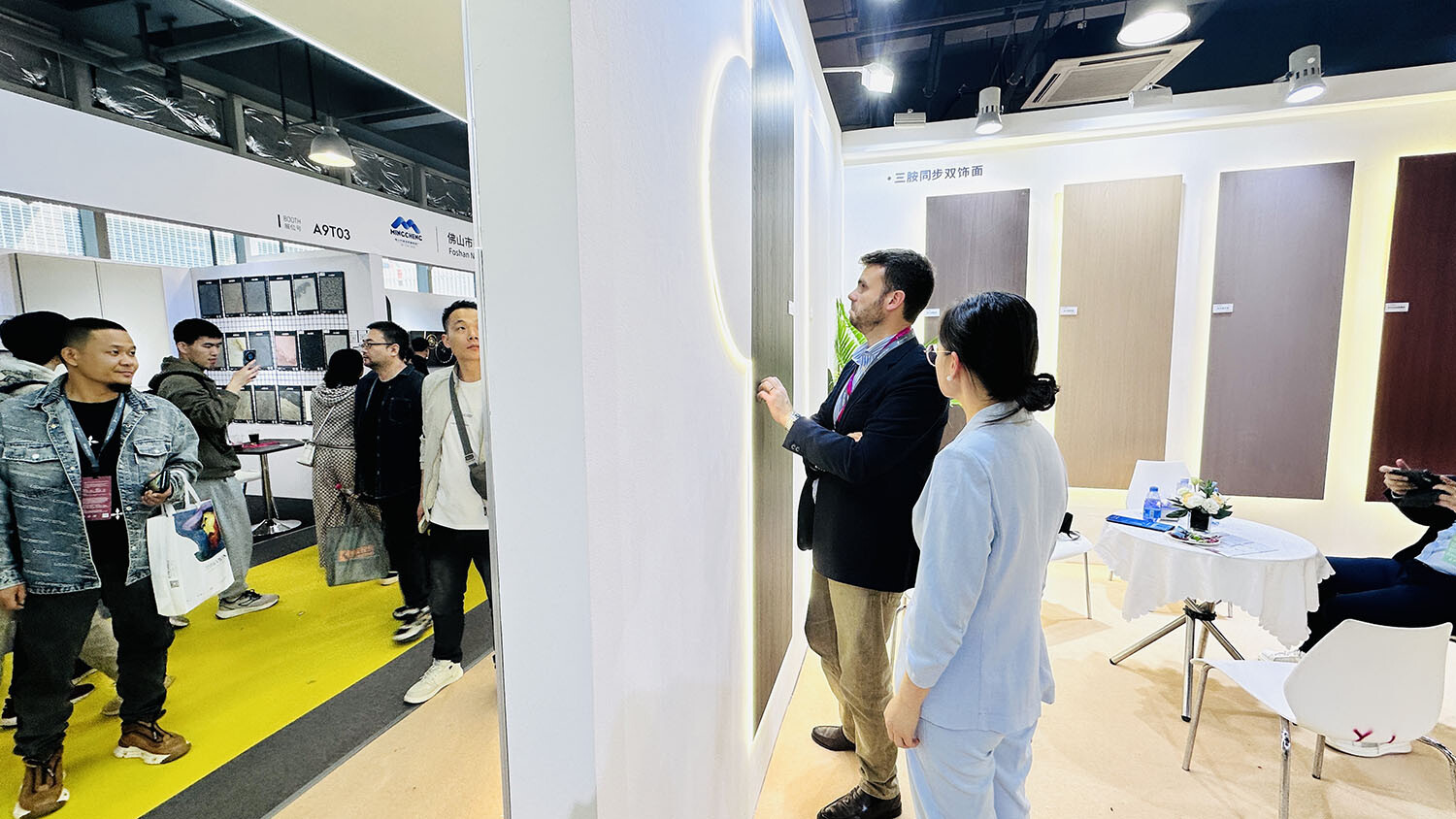 步入展会现场的福人展示区,人潮涌动、观者如织的火爆场景映入眼帘,这般热闹非凡的景象正是对产品魅力的**佐证。不管是与冷峻金属的激情碰撞,还是和温润木材的和谐交融,亦或是跟时尚玻璃的创意混搭,福人竹香蓝竹耐水板都能拿捏分寸、巧妙适配,为设计师们提供天马行空的创意源泉,变幻出风格迥异、令人眼前一亮的美学空间。