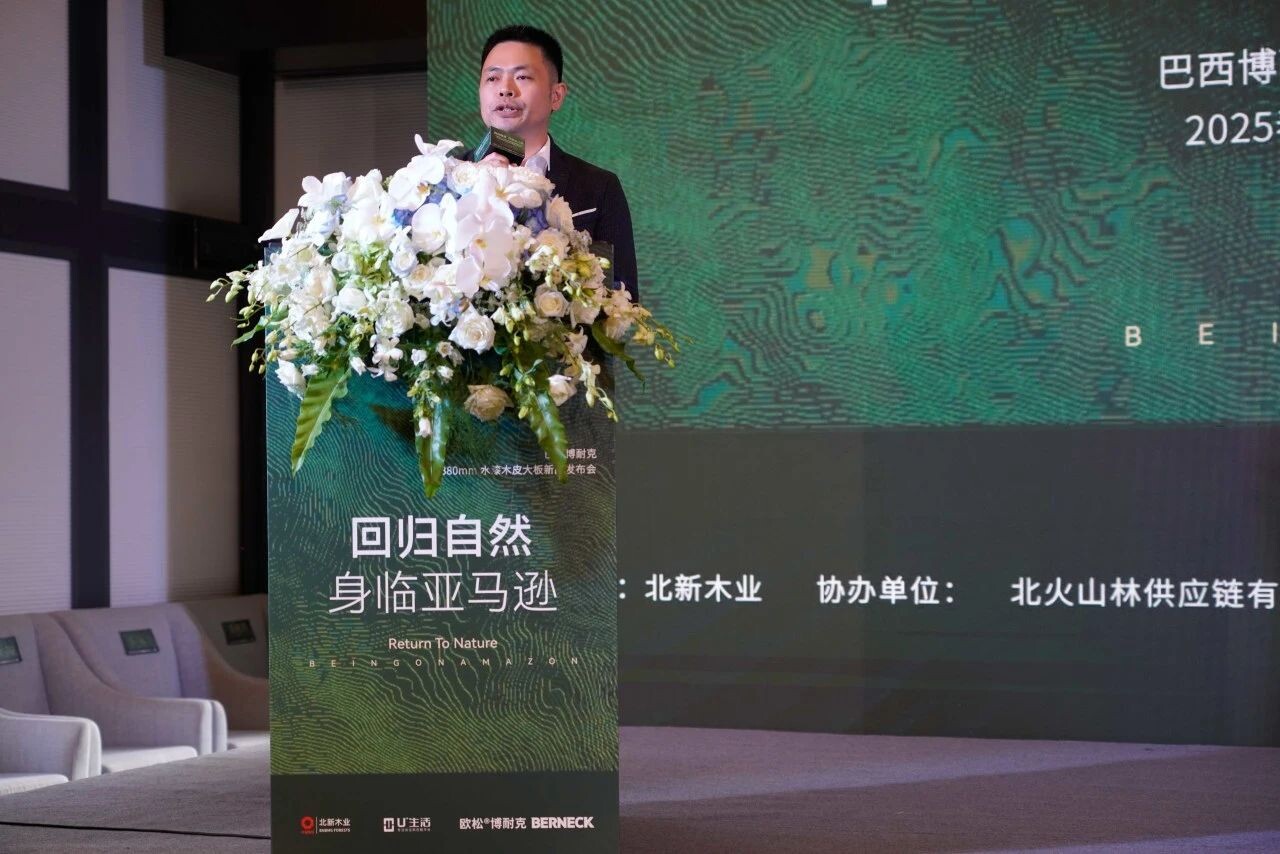 李伟对各位来宾的到来表示欢迎,他介绍到,北新木业人造板团队是一支充满活力、饱含热情且坚守底线的专业队伍。北新木业始终把品牌建设视为发展的核心战略之一,稳步提升品牌形象与市场影响力;同时不断加强在产品创新研发上的投入,完善供应链体系建设。北新木业发布欧松®博耐克水漆木皮大板系列产品,是对品牌的继承和发展;Karrisen凯立森®拉米联名系列饰面板产品,也是公司统一花色、凝聚合力的第 一步。未来北新木业将在研发、创新、营销等方面实现全国统一,真正彰显品牌的力量!