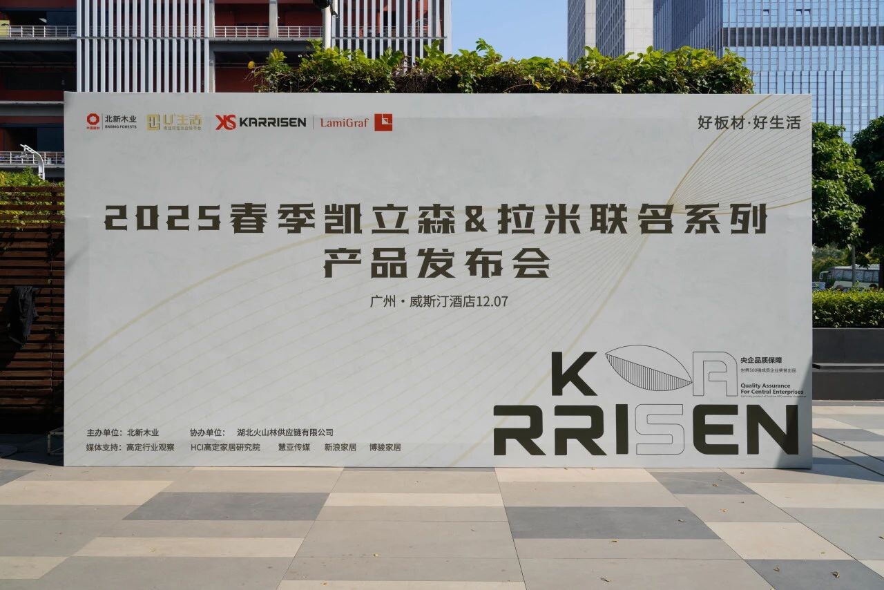 2024年12月7日,北新木业饰面板新品发布会在广州成功召开,共同见证欧松®博耐克水漆木皮大板系列产品与Kaeeisen凯立森®拉米联名系列全新发布,共谋品牌新发展,携手迈向2025全新出发。北新木业人造板事业部总经理李伟,副总经理韩旭、陈校缇,U+LIFE进口板供应链总经理汪凌峰,拉米新材料科技有限公司销售总监徐世东,宣伟涂料中国区技术服务中心高级经理罗建燕,鸿扬家装木作事业部总经理薛帅,广州易构易家具设计公司创始人、高定行业观察总编辑吴庆阳,智信弘毅创始人程波及家居行业媒体方代表,近百位来自全国各地的人造板行业专家、优秀合作伙伴等出席。