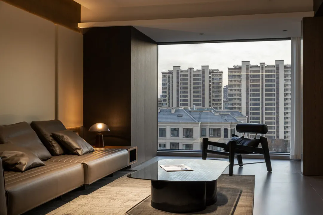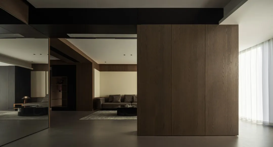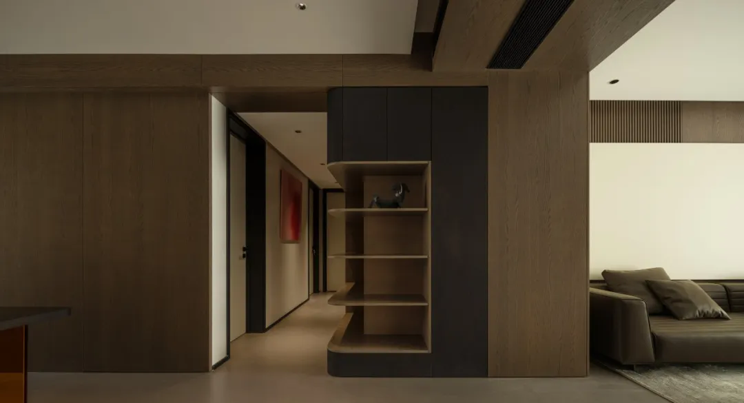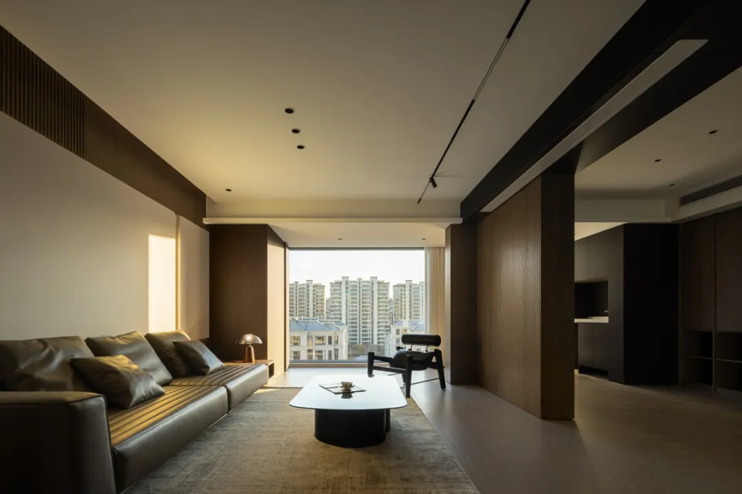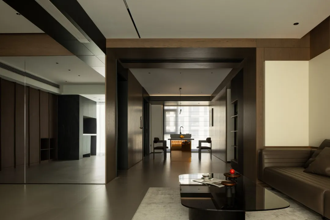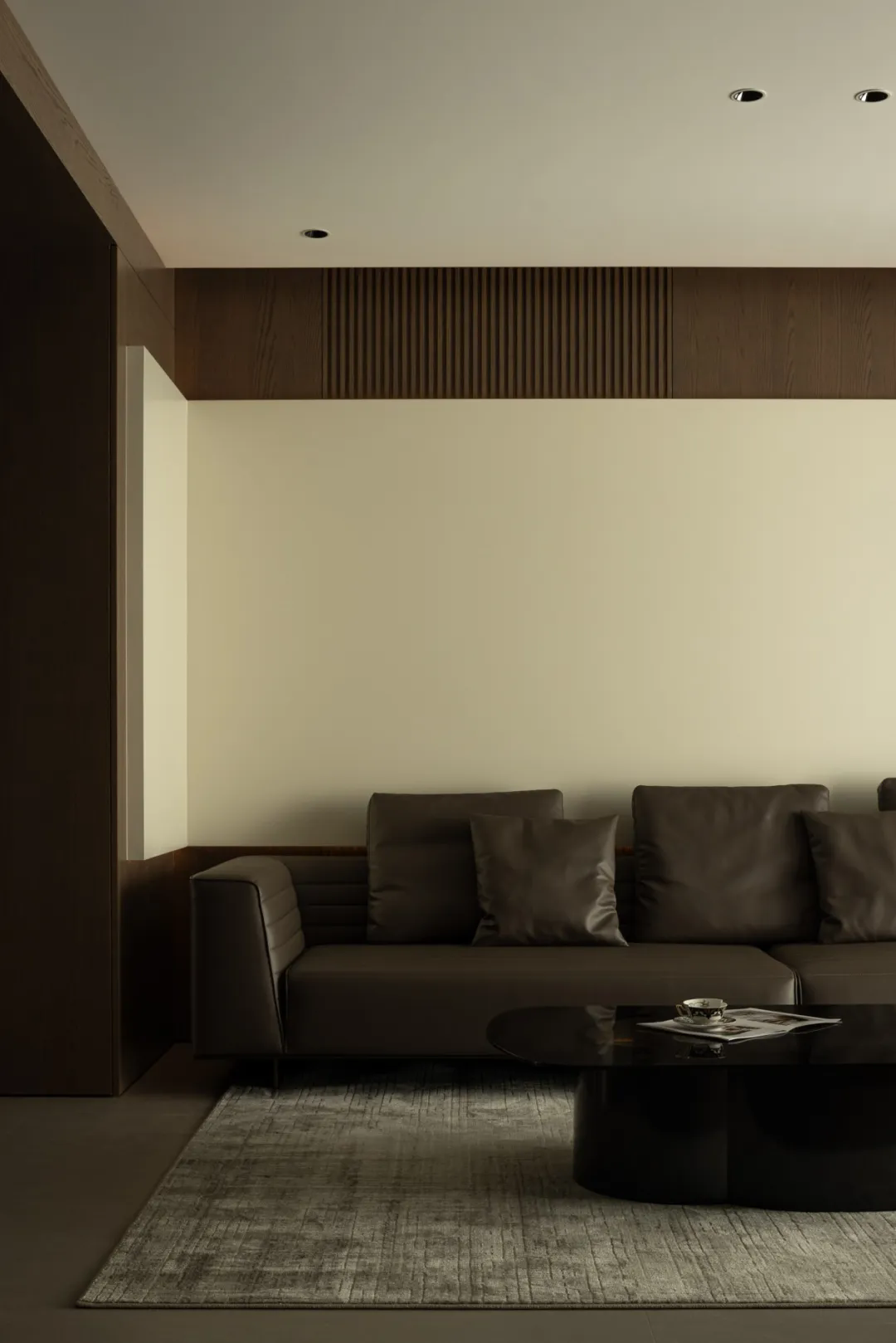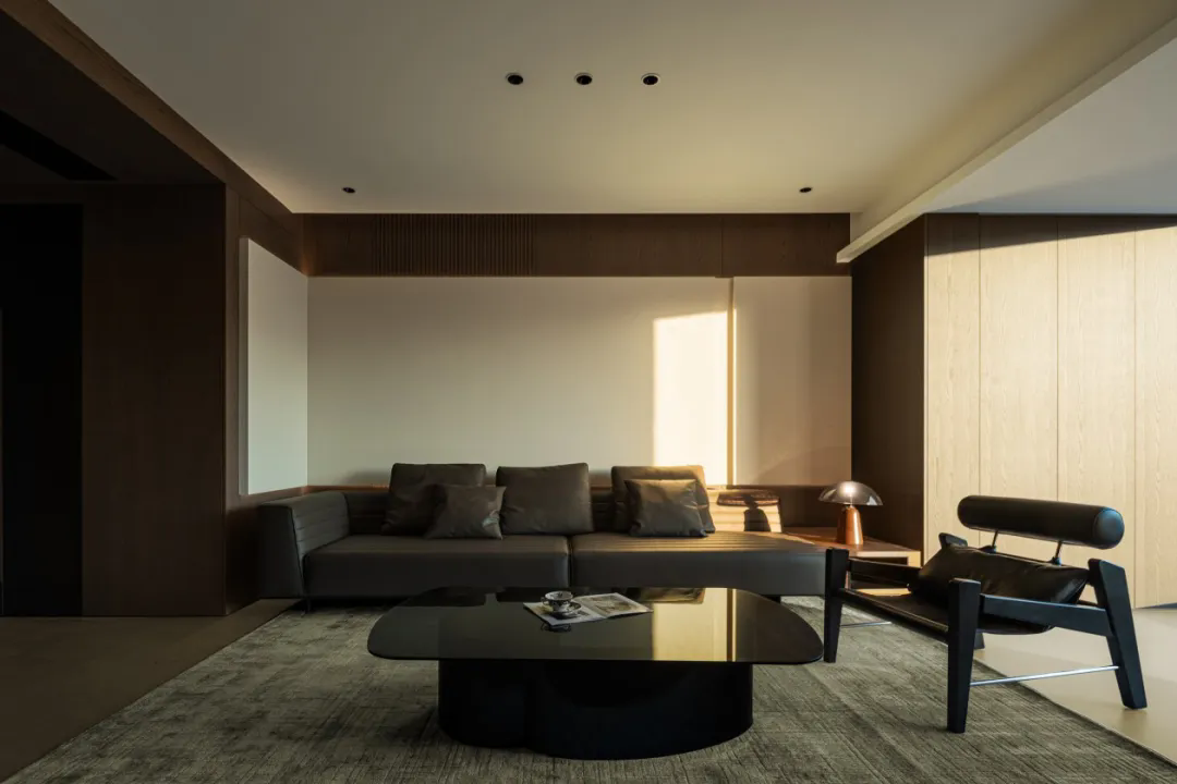 踏入客厅,深色木质的深沉与白色的纯净完美融合,为整个空间奠定了简约、开阔的基调,同时也增添了空间的层次感。