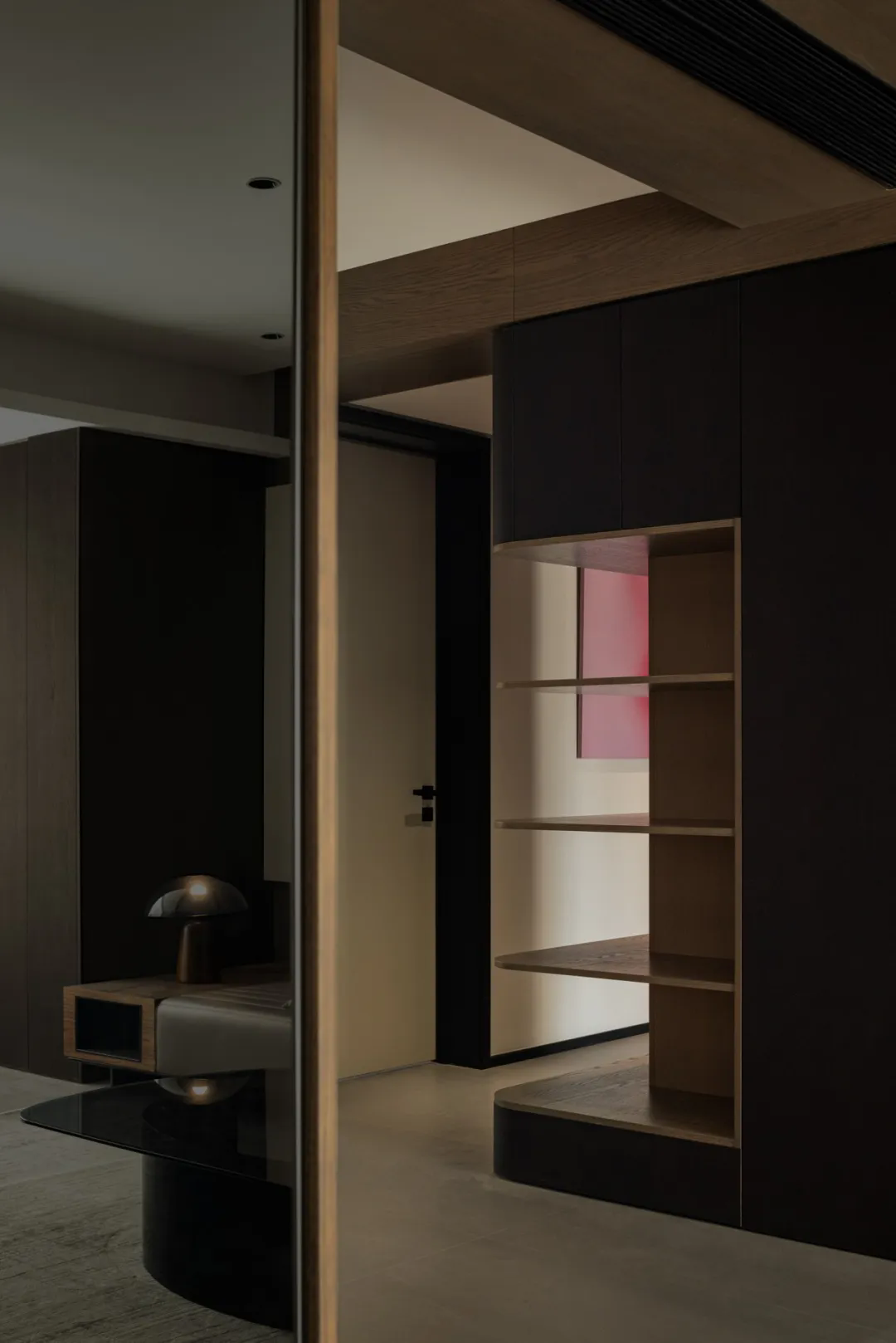 设计通过对明暗、秩序、结构的理性处理,调动区域之间的承转与过渡,在不经意的角落绽放一抹暖光,直达心底。