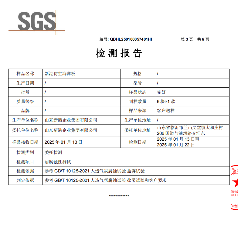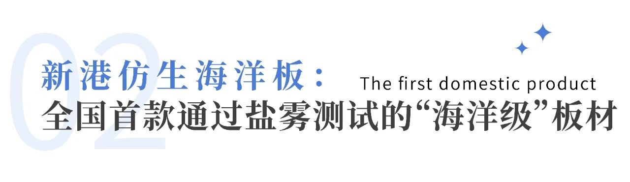 新港集团最 新研发的新港仿生海洋板,凭借革命性技术突破,成为全国首 款通过盐雾测试的人造板材,标志着其在抗腐蚀领域的绝对领先地位。