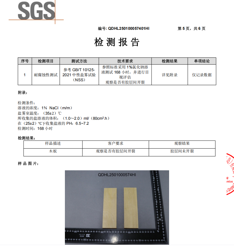 海洋环境中的高盐、高湿、高温等因素极易加速材料老化。对家居板材而言,通过盐雾测试意味着其具备抗腐蚀、耐潮湿、长寿命的核心优势,尤其适用于厨房、卫浴、沿海住宅等高湿场景,甚至可拓展至船舶、海洋工程等特种领域。
