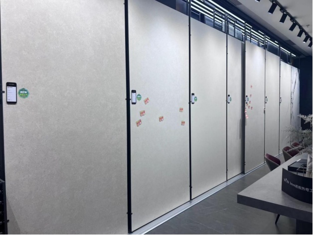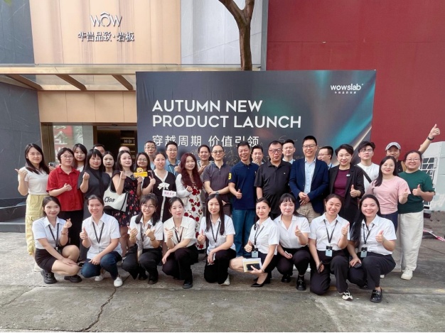谈及品牌核心竞争力,伍剑锋董事长强调:“华岩品致的根基在于原创与品质。我们拥有国际视野的品牌基 因和坚守工匠精神的团队,始终以原创设计领跑行业,产品质量工艺媲美甚至超越进口品牌。像洞石、莱姆石、砂岩、微水泥等系列,连设计师都开玩笑说‘华岩品致预判了博洛尼亚的预判’。”他进一步介绍,目前品牌已构建十一大工艺、七大系列、四个厚度、十大规格的全维度产品矩阵,260 标准SKU搭配数字化高效仓储系统,能实现72小时极速交付,为经销商与设计师提供强大赋能。
