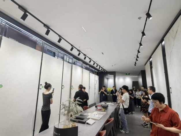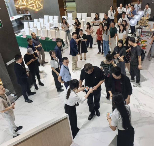 活动现场,嘉宾与媒体在工作人员引导下沉浸式品鉴2025秋季新品,近距离感受“奥克兰”的天然纯净、“西砂”的丝滑温润、“细纹鱼肚金”的奢华质感,亲身验证华岩品致的产品实力。现场还通过互动点赞评选出“最受欢 迎新品”,氛围热烈非凡。